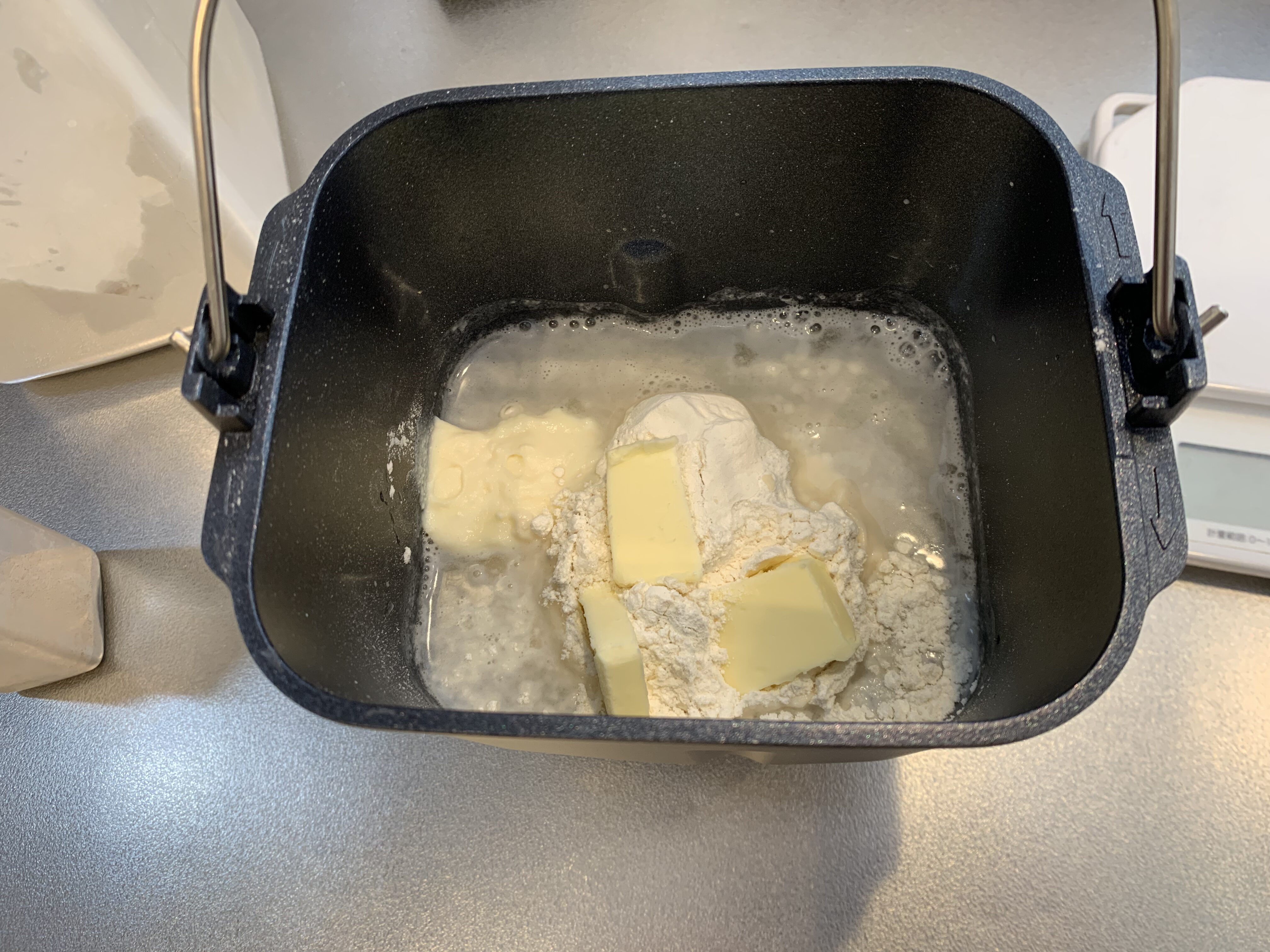 - ホームベーカリーのパン釜に材料を入れる