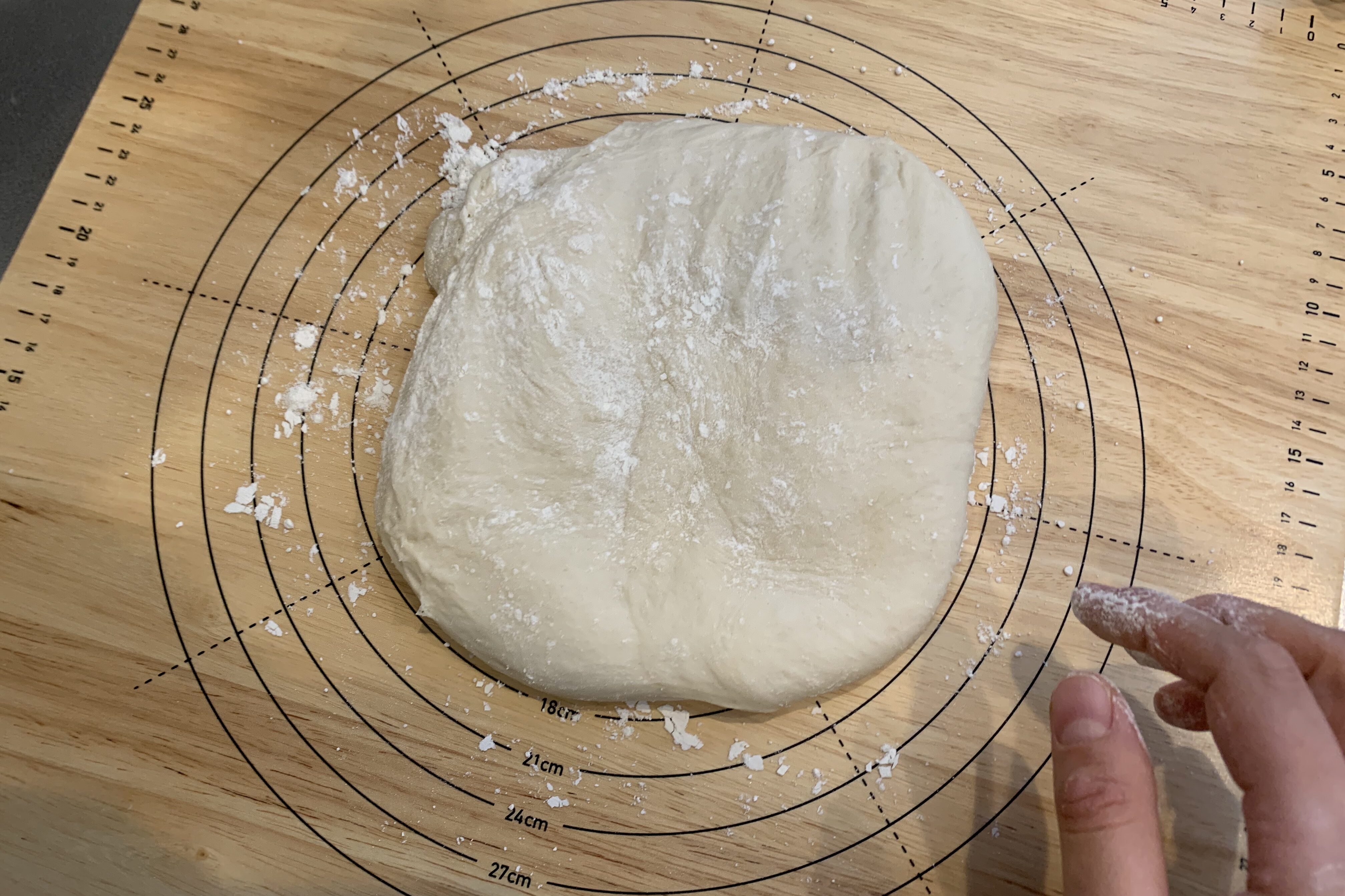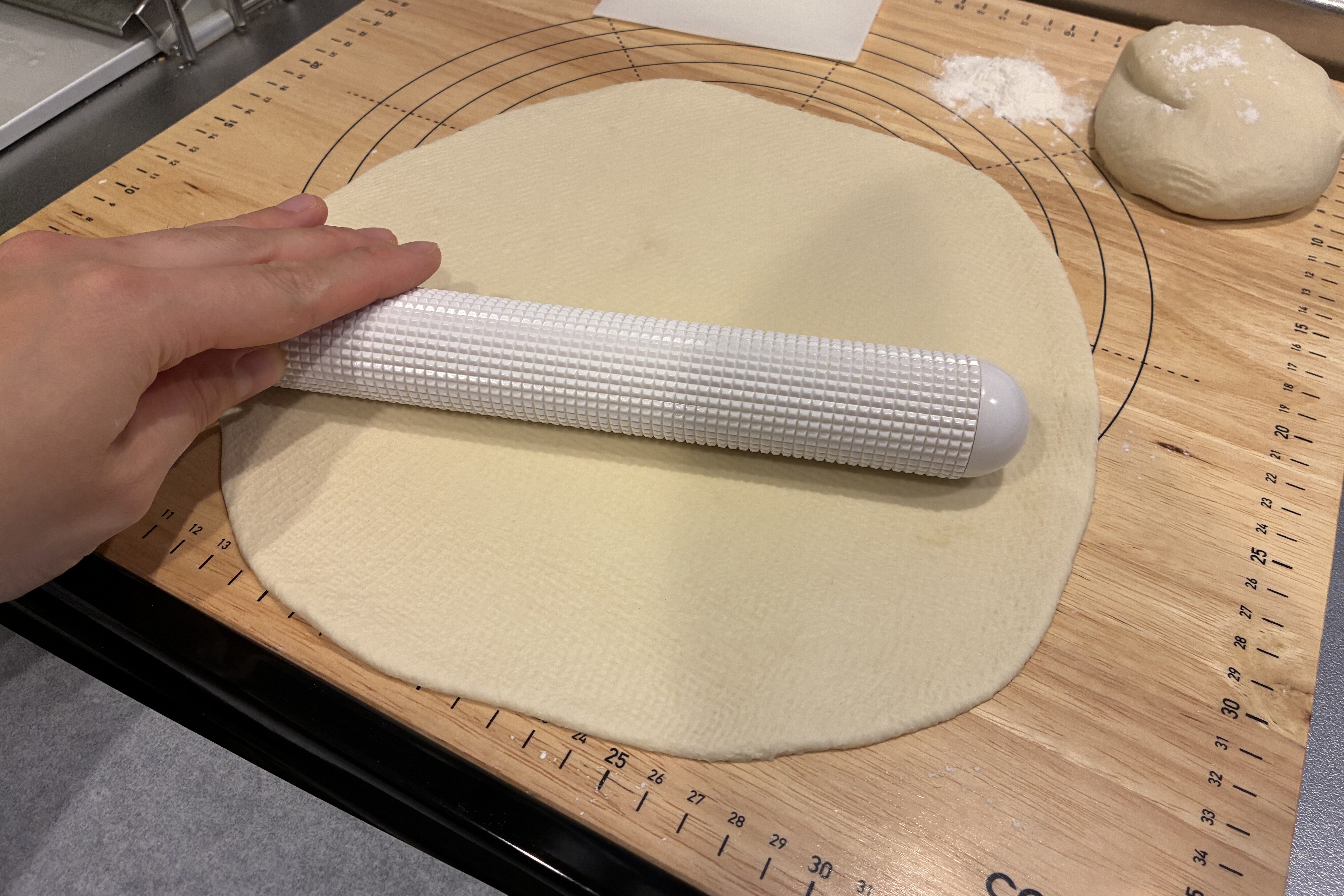 ベンチタイムをとると、生地が薄く伸ばしやすくなるメリットがあります。