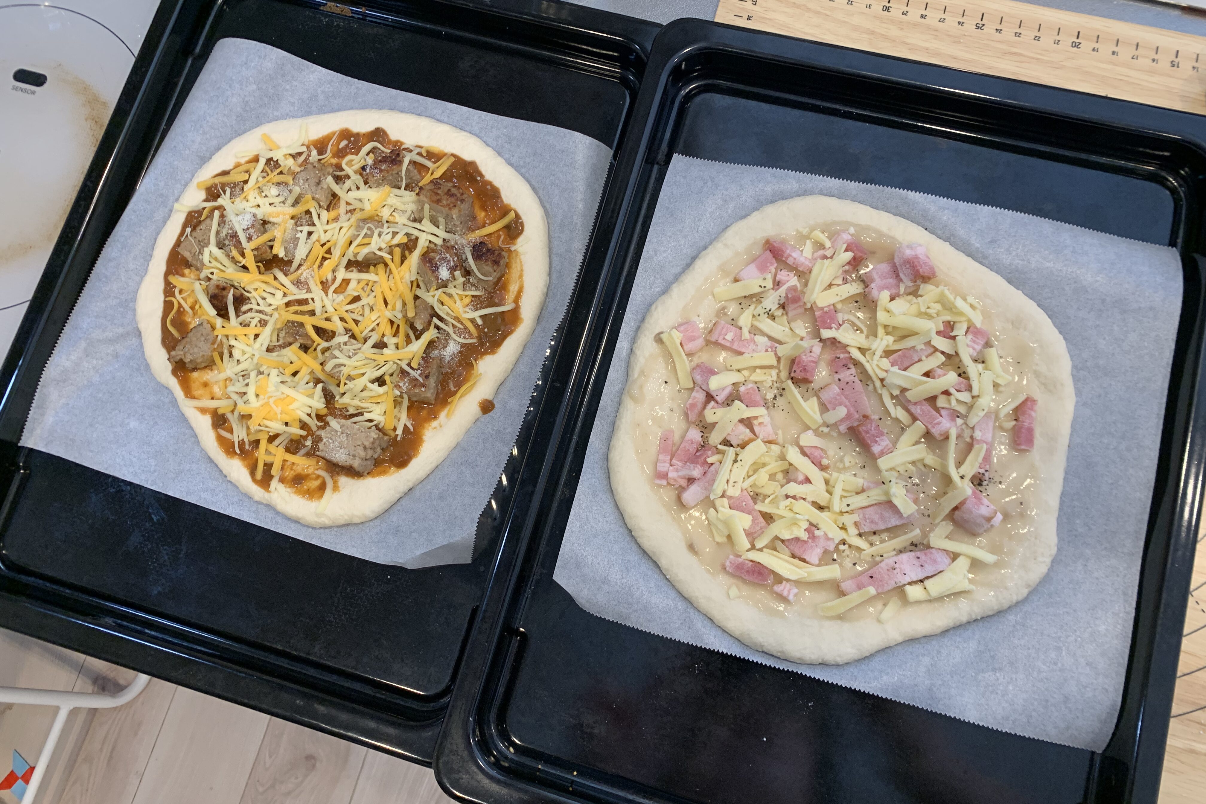 ホームベーカリーにおまかせで生地を作っている間にトッピングを用意すれば、実はすごく簡単にピザが作れます。