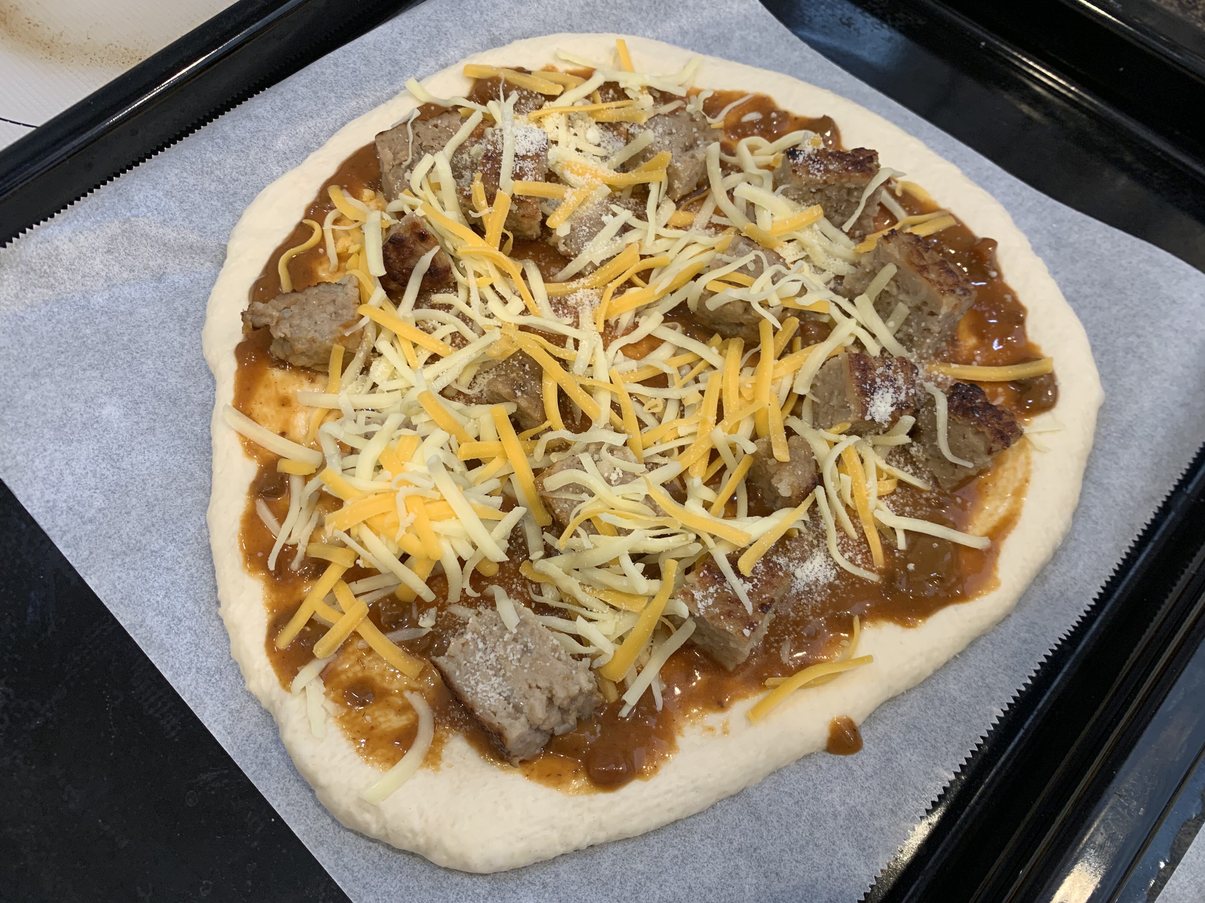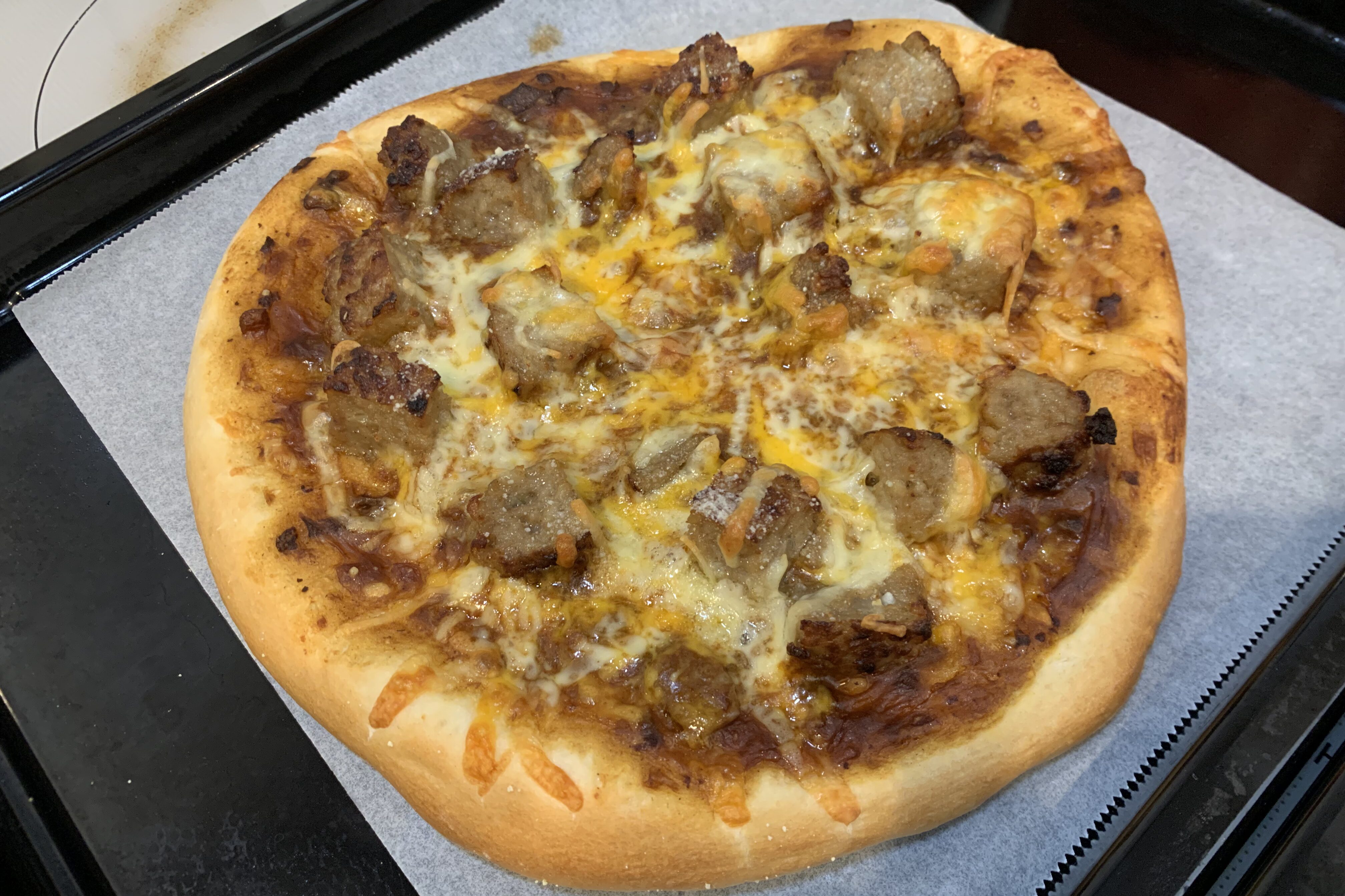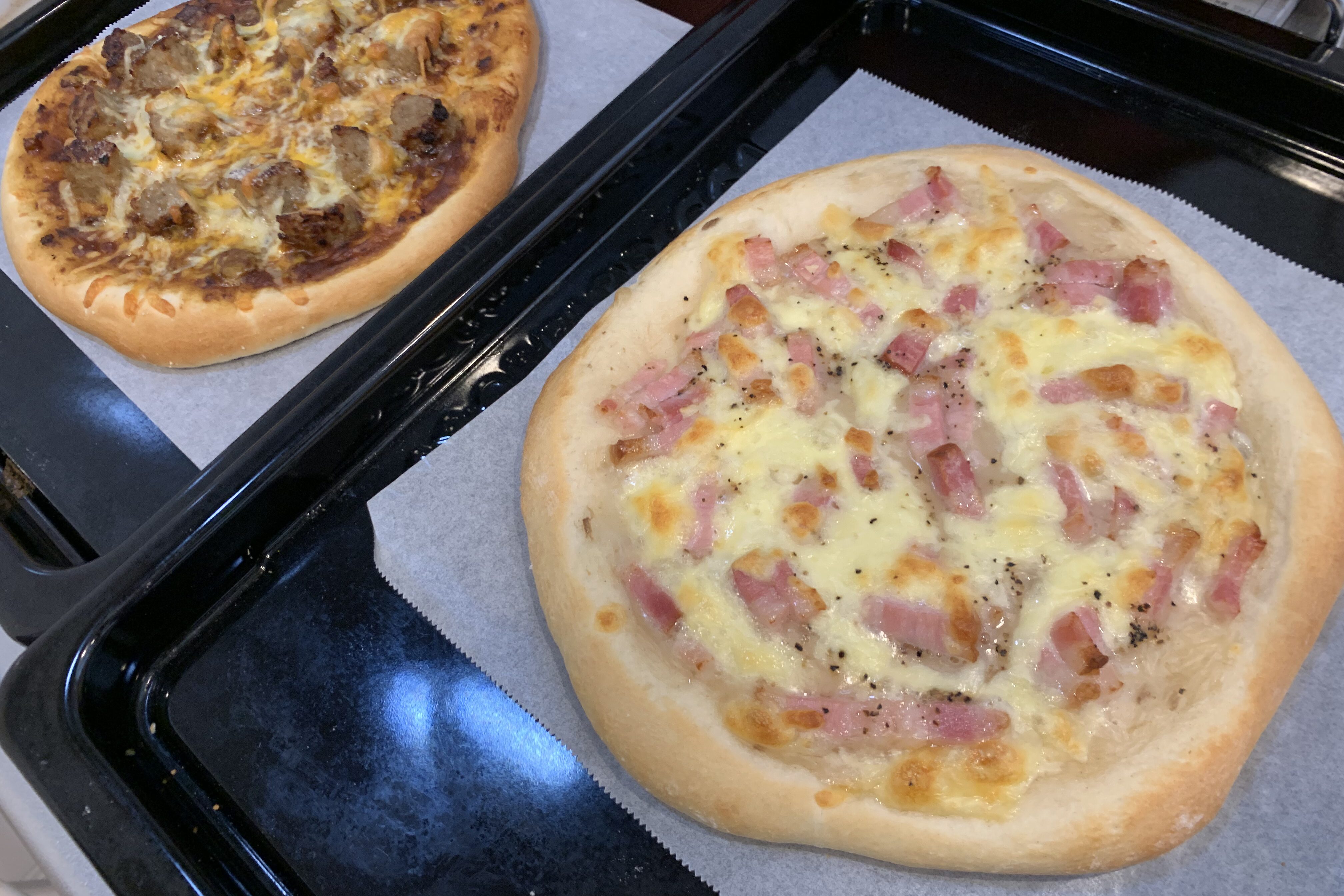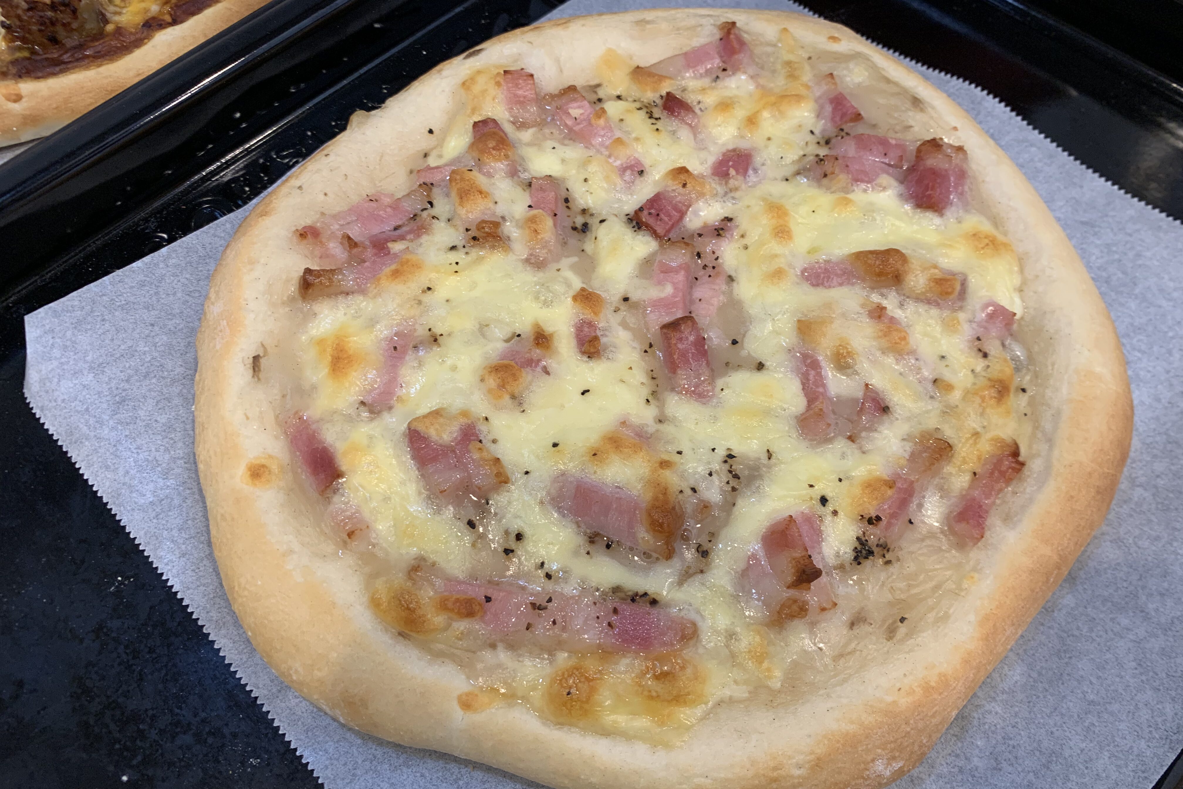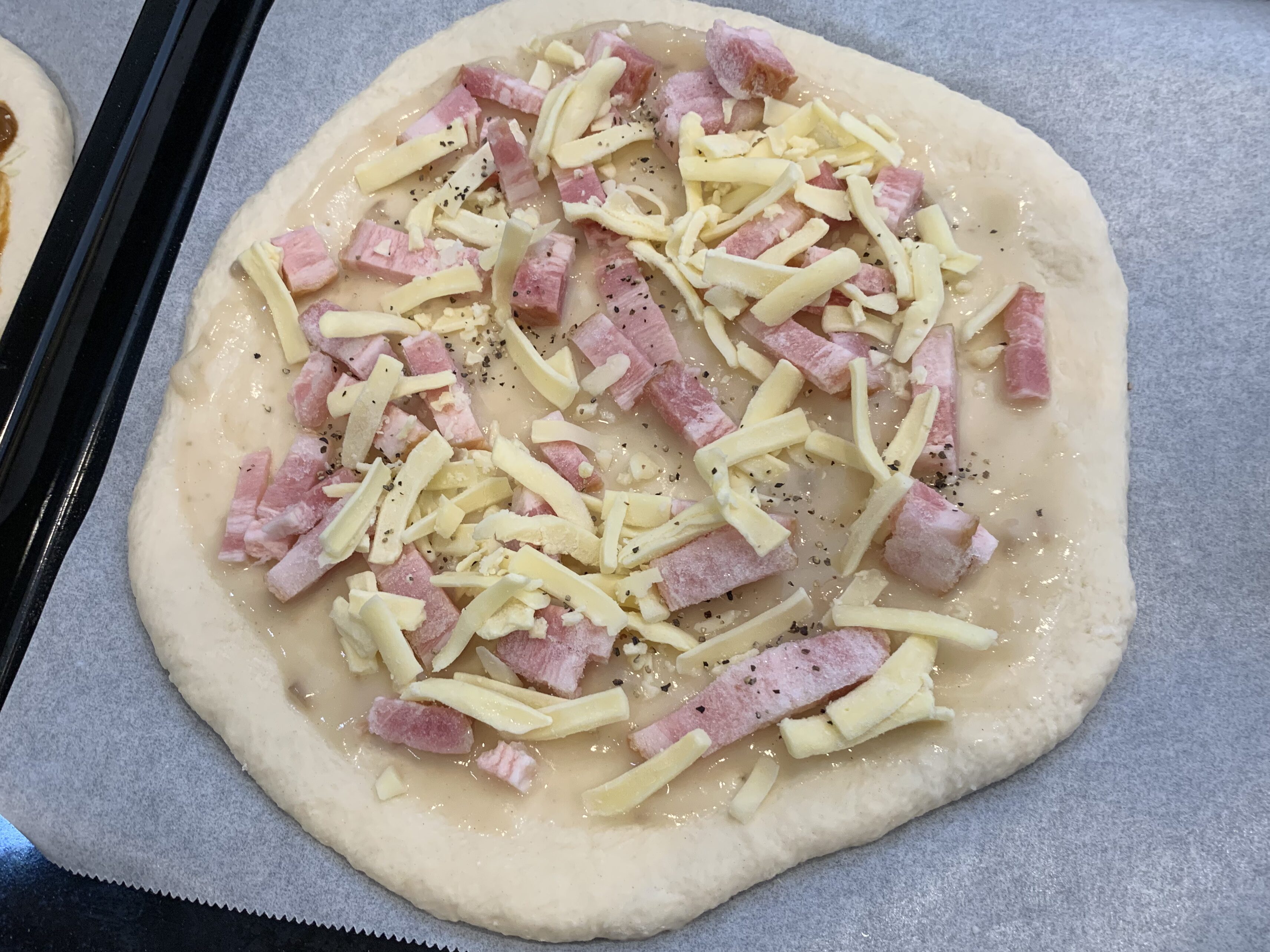 - 普通のピザ生地(ふわふわのパンタイプ)