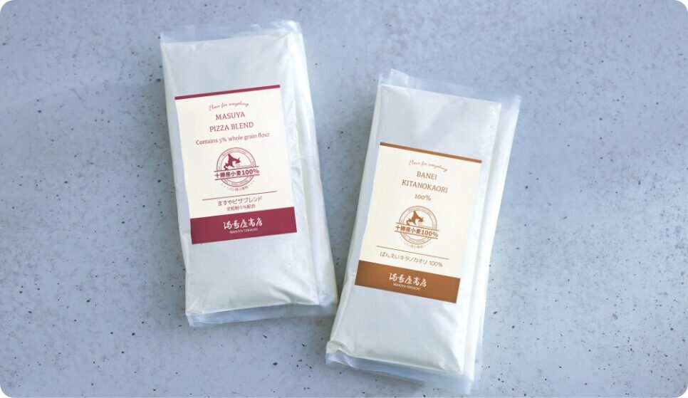 バラエティ豊かなパンミックスの他、十勝産100%のピザ用ブレンド小麦なども選べます。