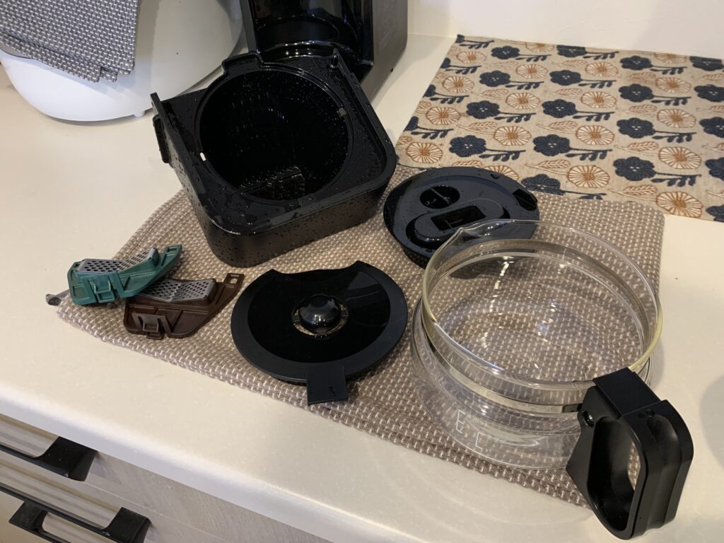 NC-A58には、毎回取り外すパーツがありますが、挽き分けフィルターのつけ外しが若干やりにくいです。慣れれば非常に簡単で、破損しにくい構造なのがわかって好印象になるのですが、最初は苦労します。